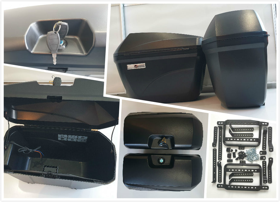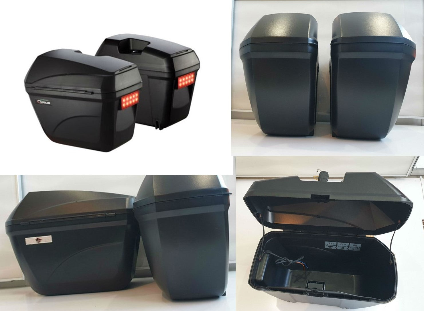 Matt-Black Pannier boxes, built of a very strong PP – PV material, very flexible, yet very strong, these are made to last, Strong boxes which are ideal for Trike Projects, Tourer Motorcycles, Custom Motorbikes, BMW's and many other motorcycles.