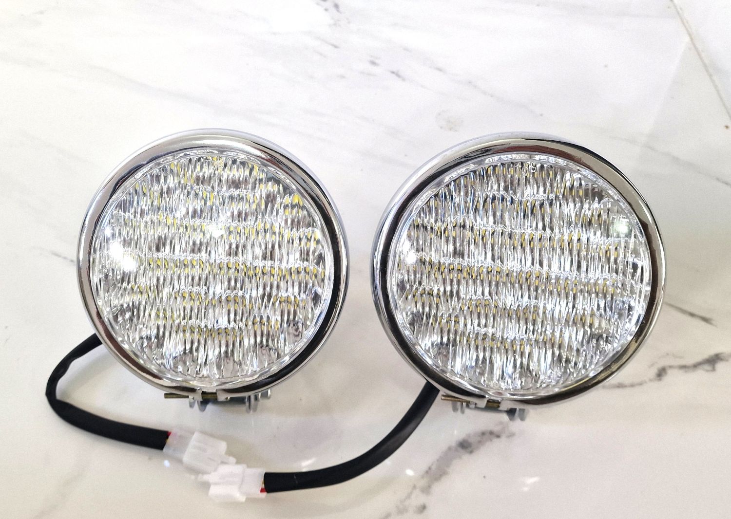 Pair of Powerful LED Spotlights 4 3/4" Motorcycle Solid Steel Chrome Sidelights 12V-35W 2 Pcs