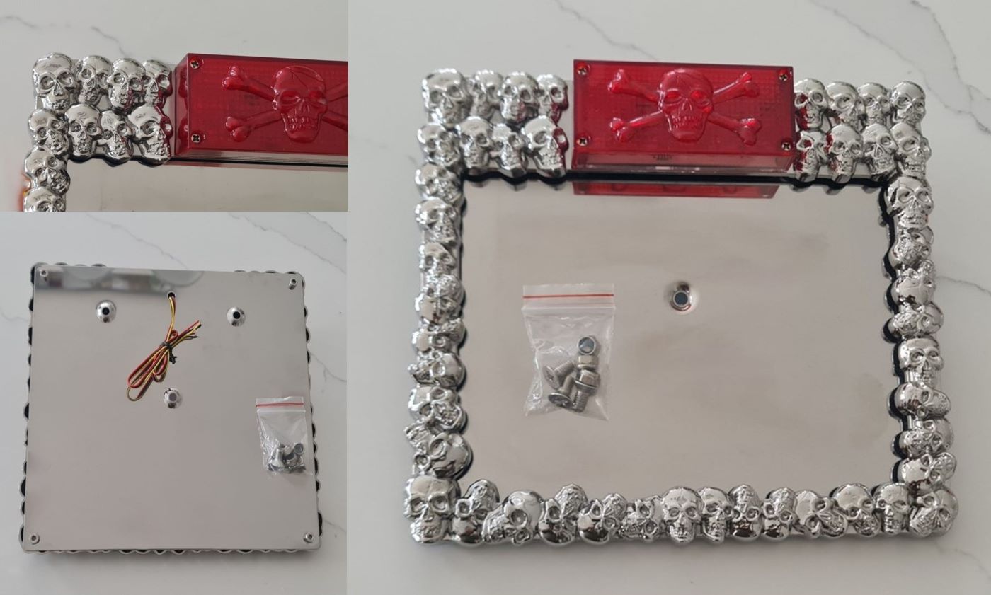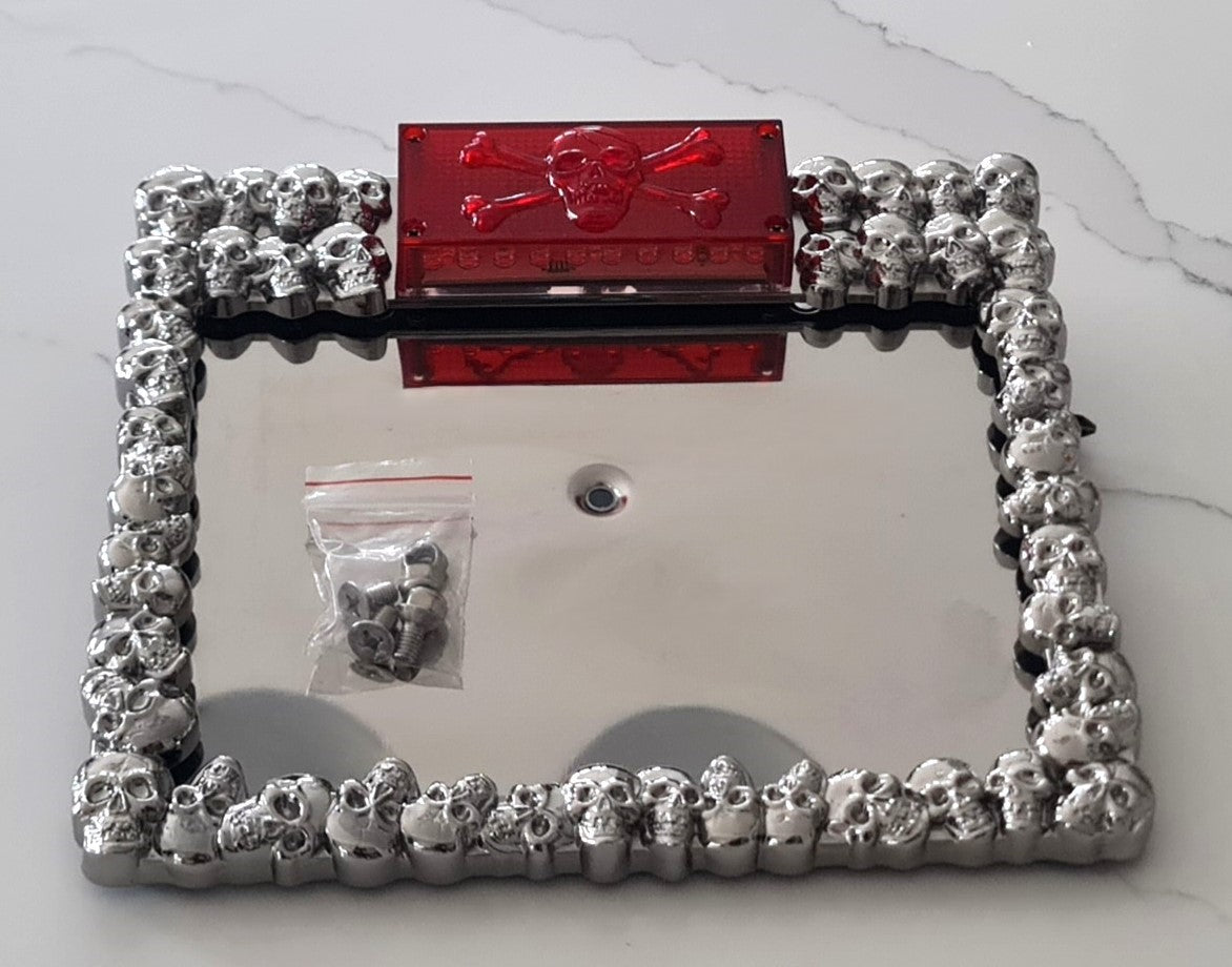 Skulls License Plate Trim-Frame and Taillight, Motorcycle-Custom Bikes, Cruisers, Choppers, Trikes