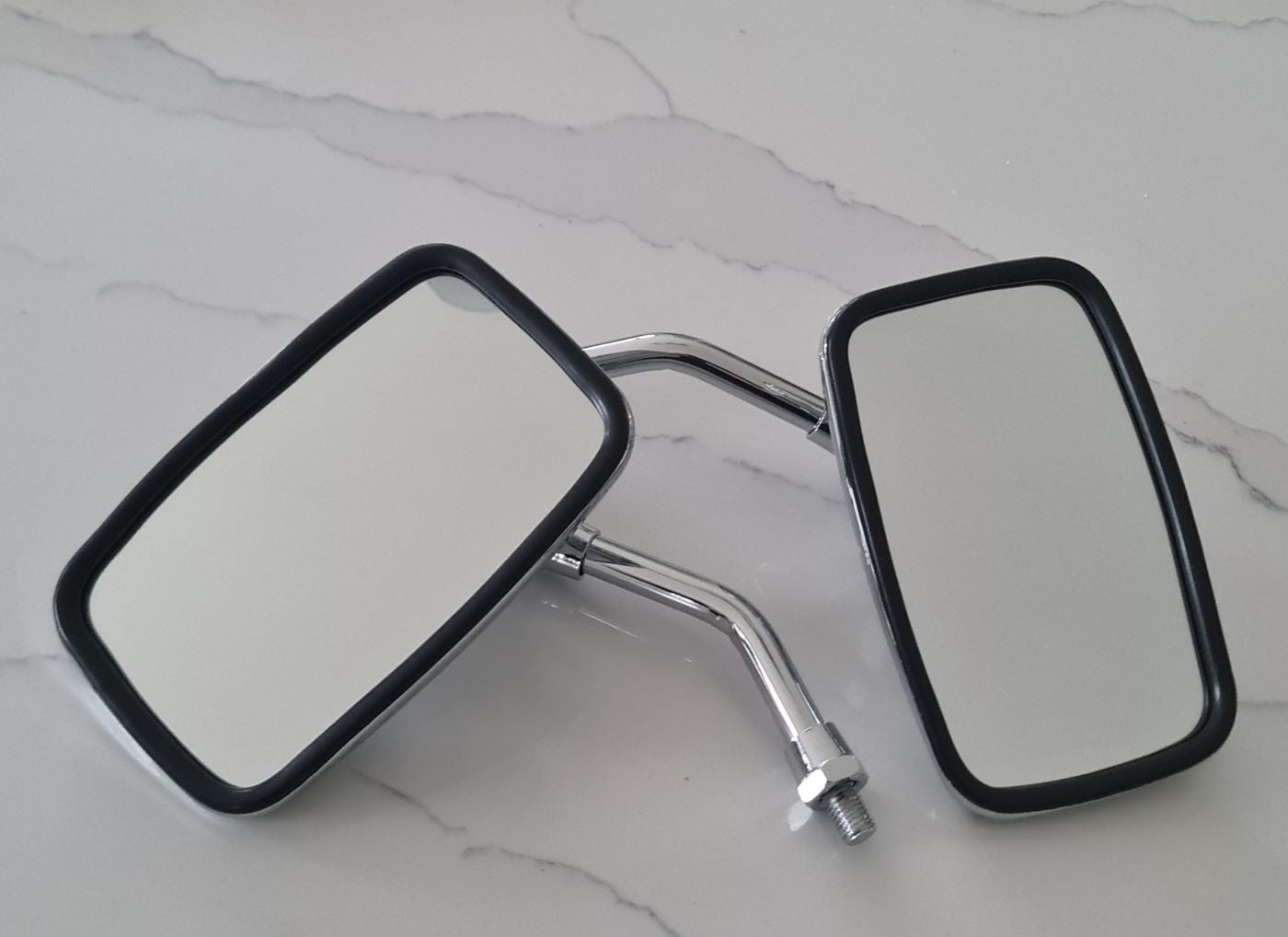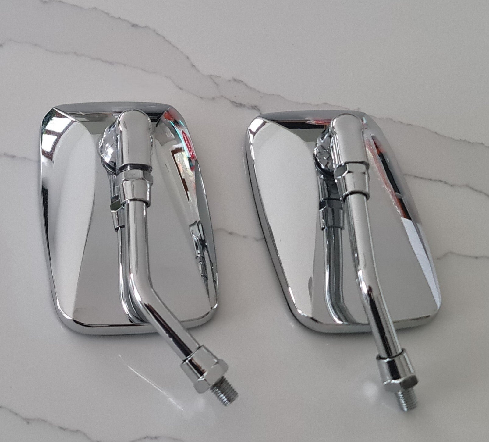 Chrome Rectangular Large Mirrors (Pair) 10mm Stem-Universal-Motorcycle Mirrors