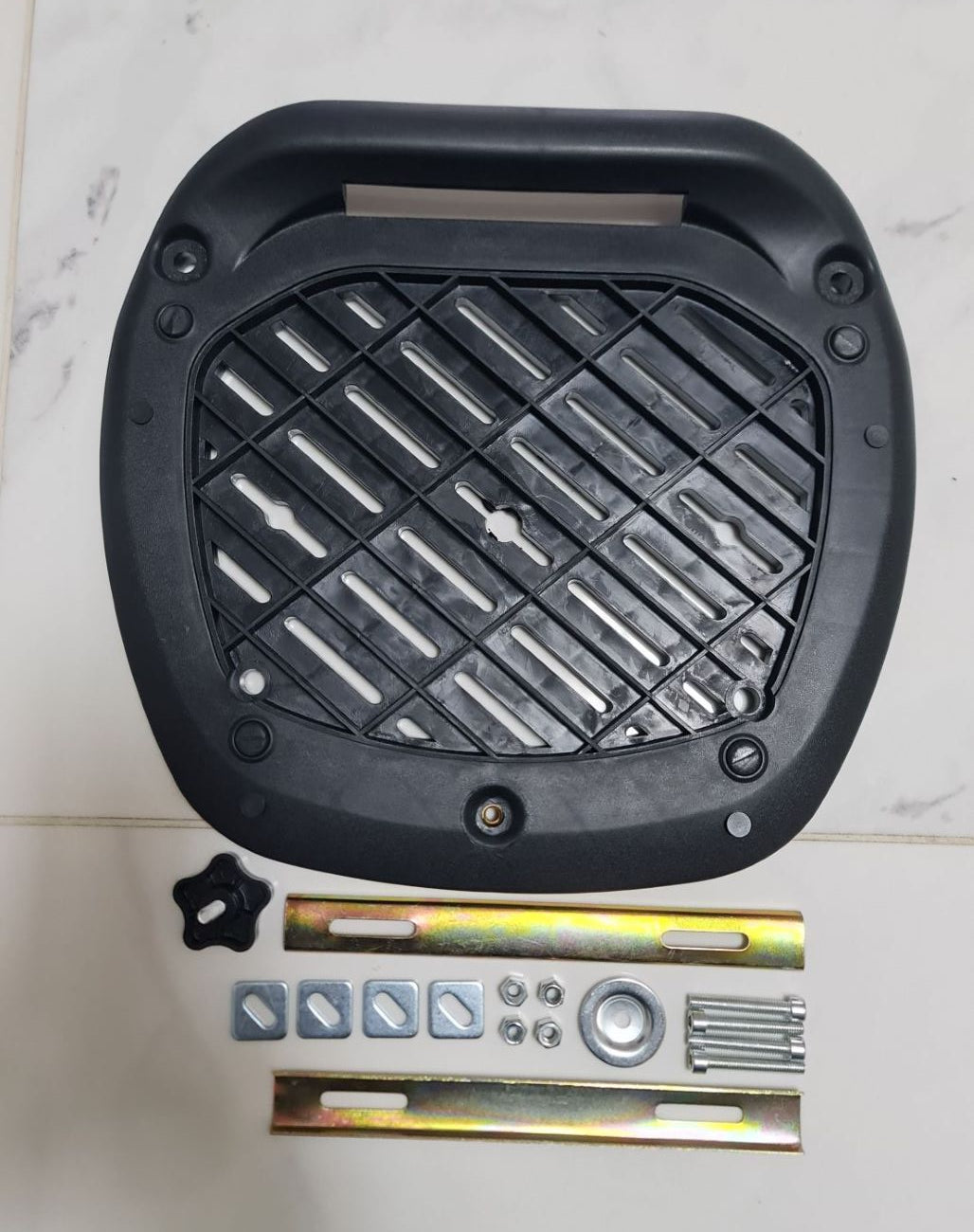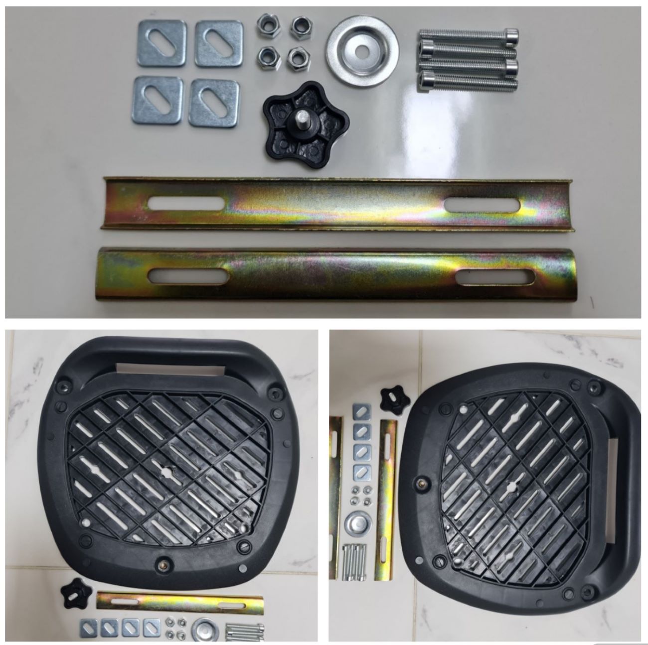 This advert is for a Complete fitting kit (Mounting Plate, Mounting Plate Cover, Fitting Brackets, Bolts & Nuts). Topbox shown on one of the photos is not included